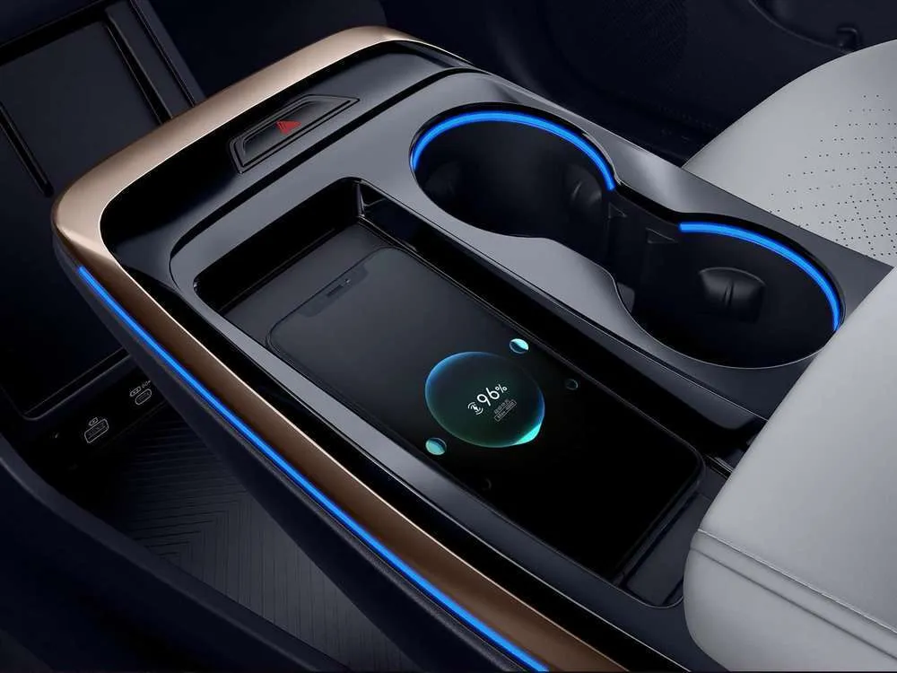 Беспроводная зарядка для телефона мощностью (50 Вт) 2 USB-разъема на центральном тоннеле (Type-C+ быстрая зарядка)