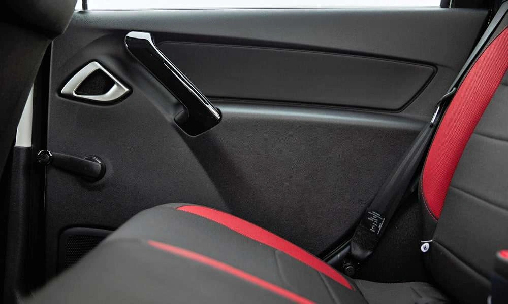 | Обивка сидений ткань. Цвет черный с красными элементами |